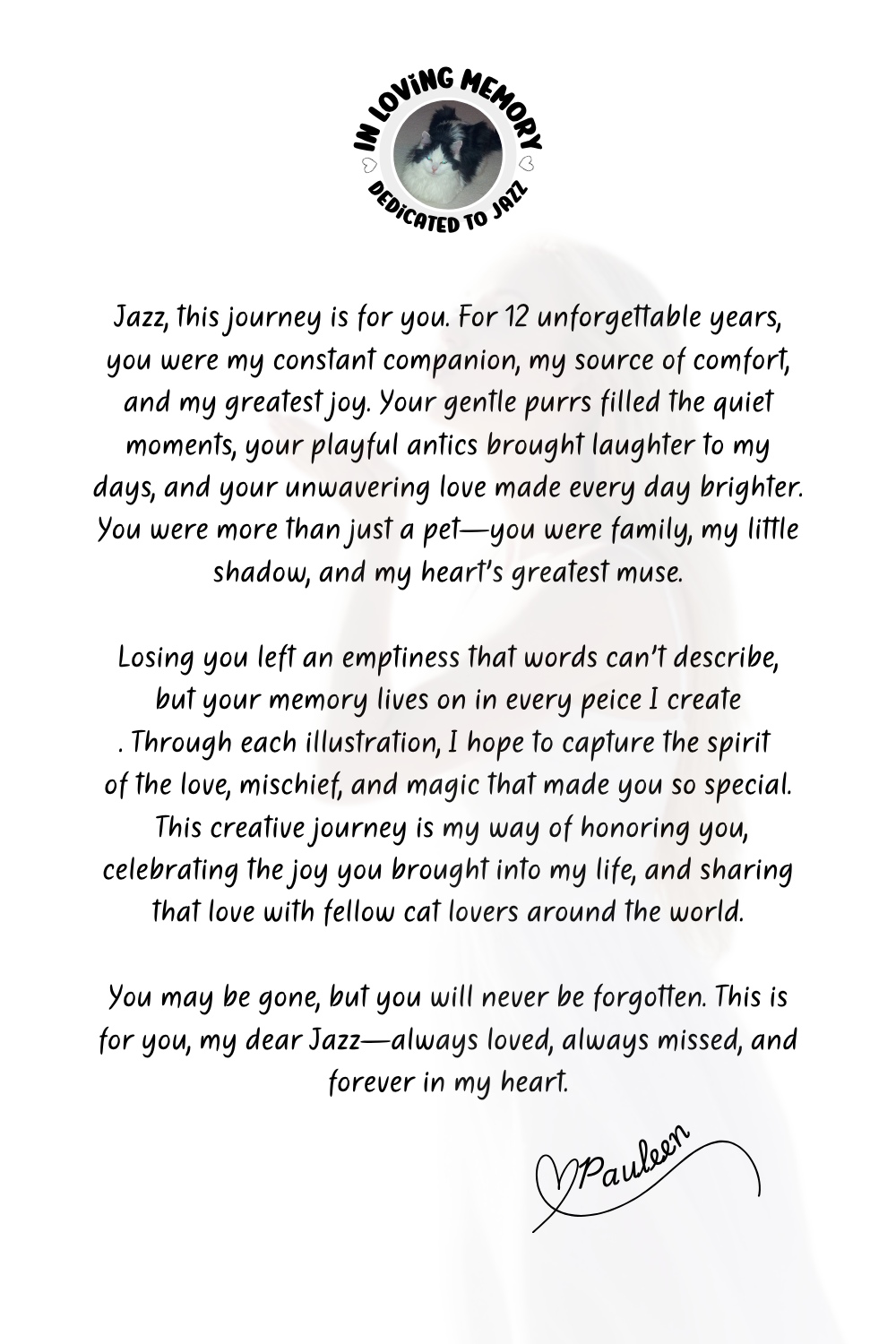 Hello and welcome to Love for Cats, a heartfelt collection of art inspired by whiskers, paws, and all things feline.